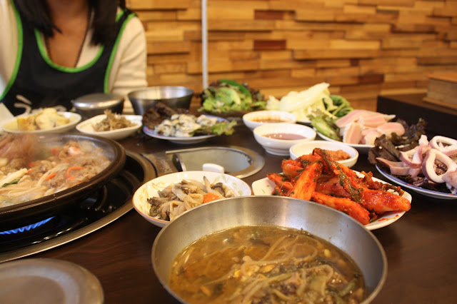 Vad kan man säga? Kvantitet, definitivt. Jag och Ida såg hur de andra på resturangen lämnade kvar en massa mat och vi tyckte det var slöseri. Dock så efter maten så visade det sig att vi inte heller kunde äta upp allt. Bulgogi har alltid varit min favorit innan, kanske för att jag inte ätit något annat koreanskt i Sverige, men nu efter att ha upplevt en massa olika typer av mat så är det nog inte längre en favorit. Jag har på senare år fått svårt för för salt mat. Det är Carolyns fel. Bulgogi är väldigt salt och sött kött, vilket är trevligt men jag föredrar okryddat kött som jag sedan doppar i såser då jag själv kan välja mängden. De olika banchans var också ganska salta vilket är vanligt, men eftersom jag har blivit så känslig på senare år så var det gott med öl till maten. Efter maten så höll vi på att somna på grund av matkoma. Gå hit om ni är hungriga, det är verkligen väldigt många banchans.